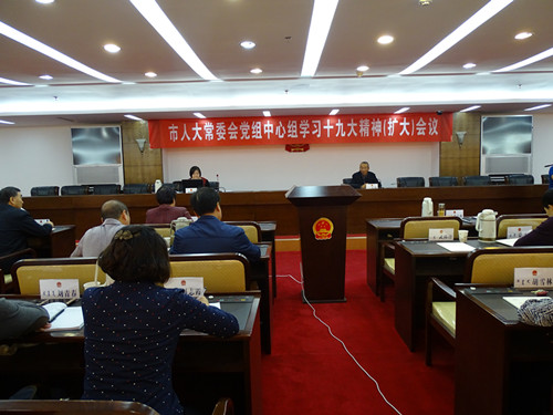 11月14日下午,市人大常委会召开党组中心组学习十九大精神(扩大)会议,深入学习党的十九大精神。